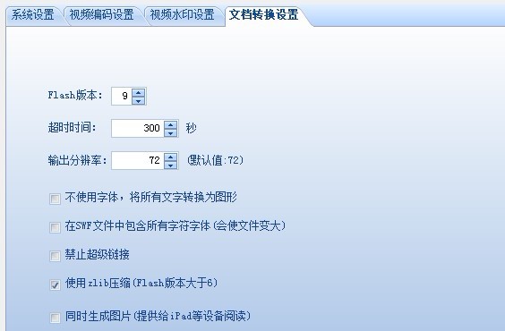 本系统除支持数十种常见视频格式编码外,还支持将Office全系列、WPS、PDF等文档格式转换编码为Flash文件,几乎囊括了互联网流行的所有媒体类型。